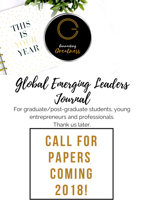 Connecting Greatness is working on launching the “Global Emerging Leaders Journal” at the end of 2018! This is a multidisciplinary journal with a focus on: